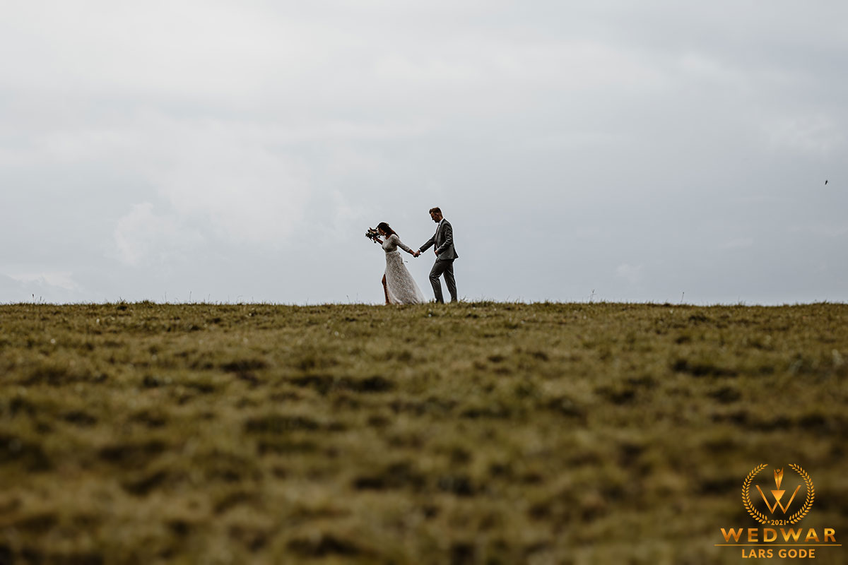 I love it when bridal couples sometimes take more difficult photos. Now one wonders what was so difficult about it ?! OK. The access to the pasture was secured with barbed wire. The bride is afraid of cows, and a wedding dress doesn't really get along with what cows leave behind in a pasture. :-) Still, both of them managed it wonderfully.