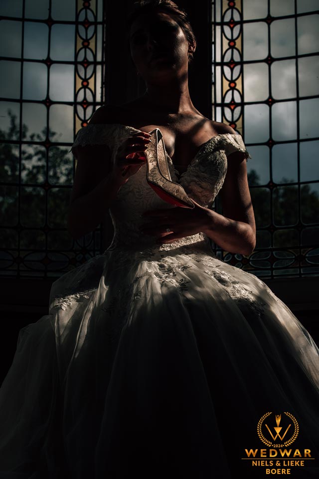 As the beautiful bride sat before the vibrant stained glass windows, an impromptu moment unfolded. The enchanting light filtered through the glass, creating a magical atmosphere. Seizing this perfect opportunity, the bridal guests captured a unique photo. Thanks to our technical expertise, we immortalized this spontaneous and breathtaking scene without any need for posing