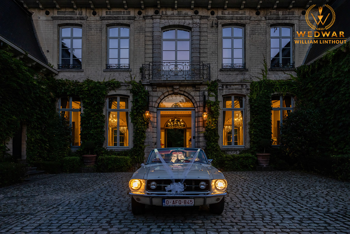 Deze foto van de Ford Mustang met het koppel werd bij daglicht gemaakt met wat extra licht vooraan in de wagen. This photo of the Ford Mustang with the couple was taken in daylight with some extra light in the front of the car.